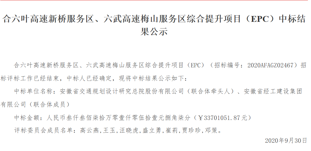 4.合六叶高速新桥服务区、六武高速梅山服务区综合提升项目