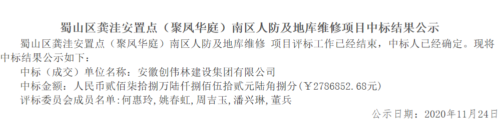 1.蜀山区龚洼安置点(聚凤华庭)南区人防及地库维修项目