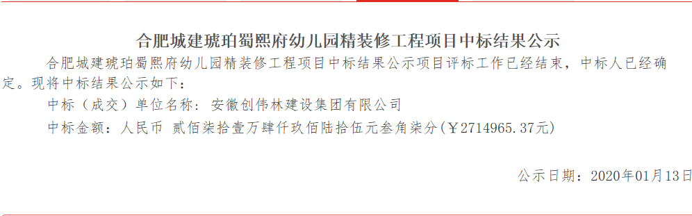 7.合肥城建琥珀蜀熙府幼儿园精装修工程项目
