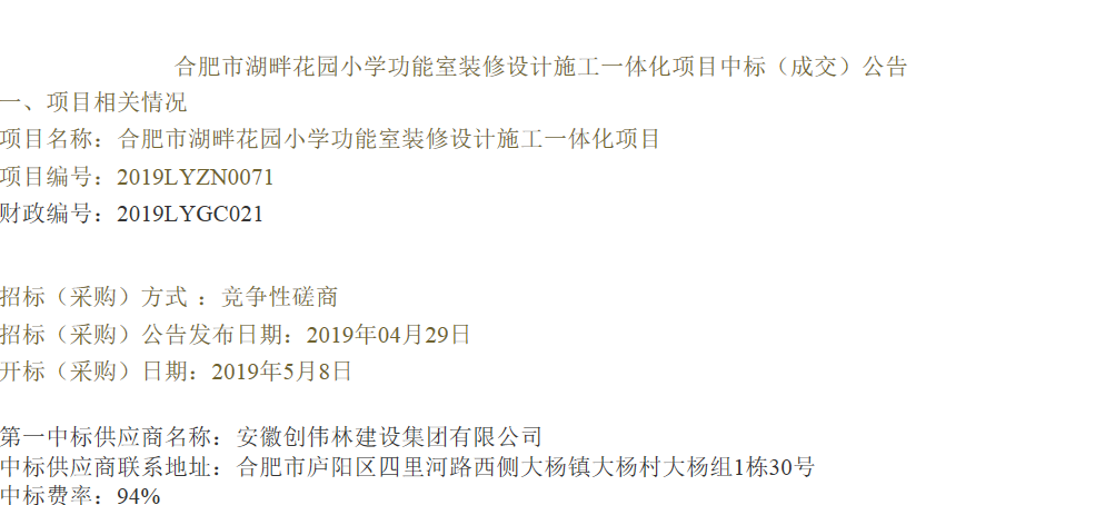 中标时间:2018.6.25 中标费率:93.6%