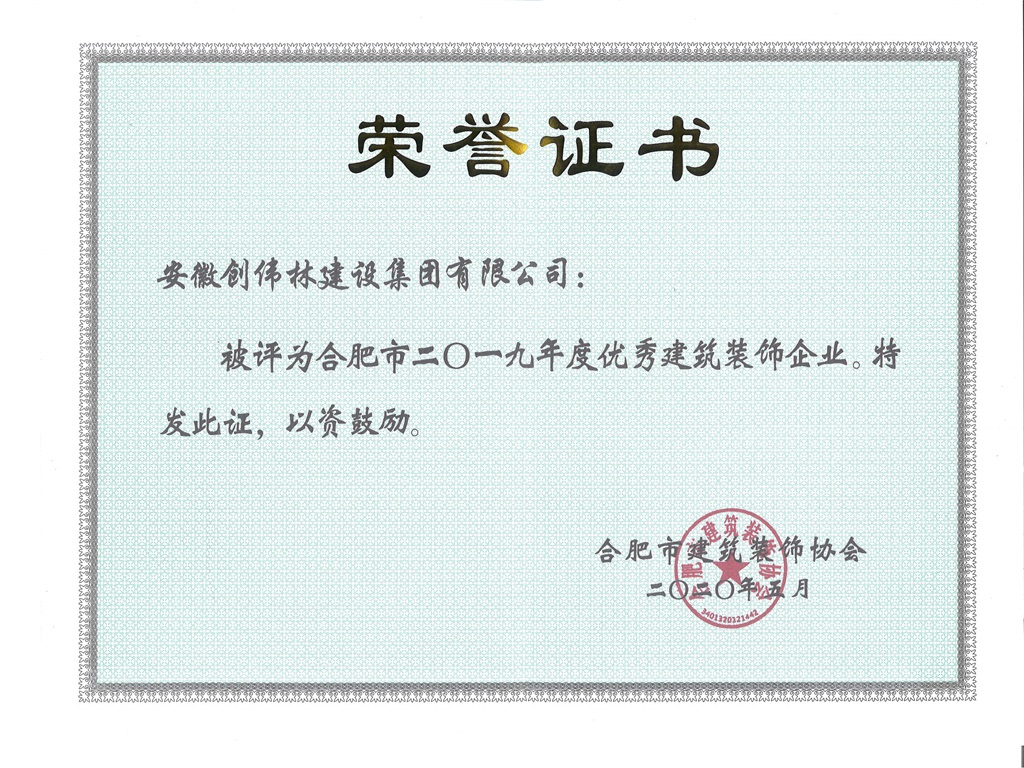 合肥市2019年度优秀建筑装饰企业