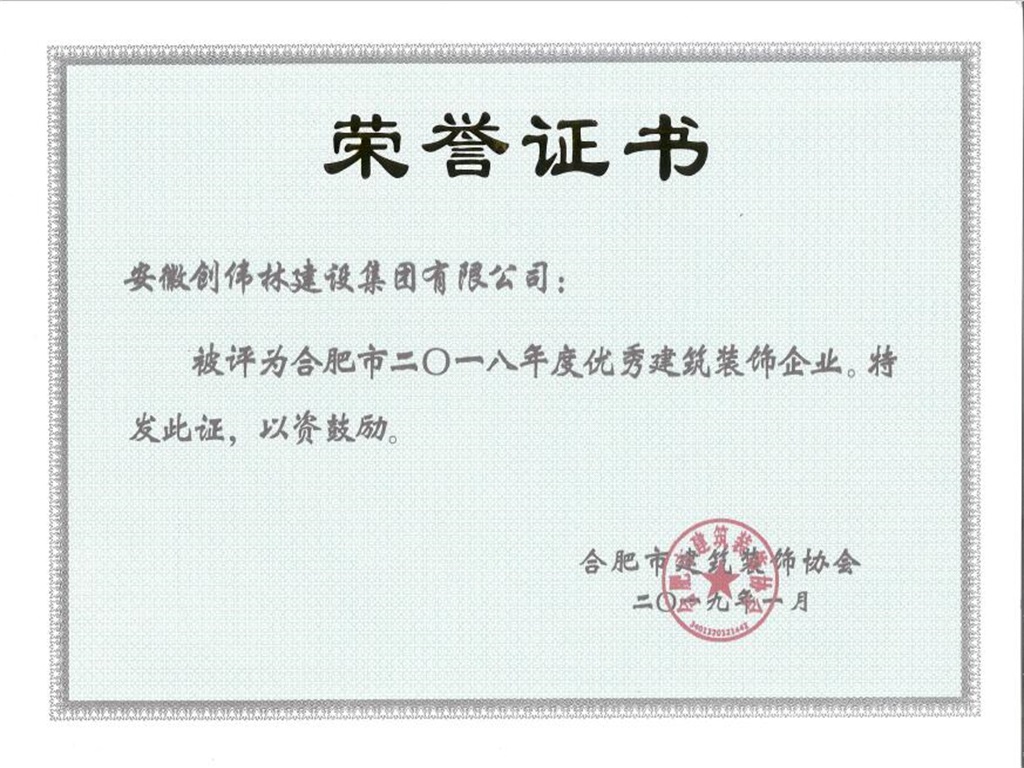 合肥市2018年度优秀建筑装饰企业