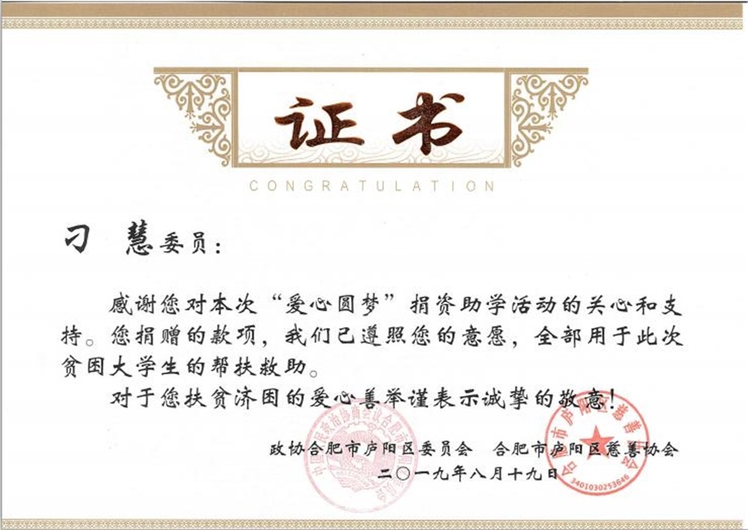 2019年庐阳政协、慈协捐资助学