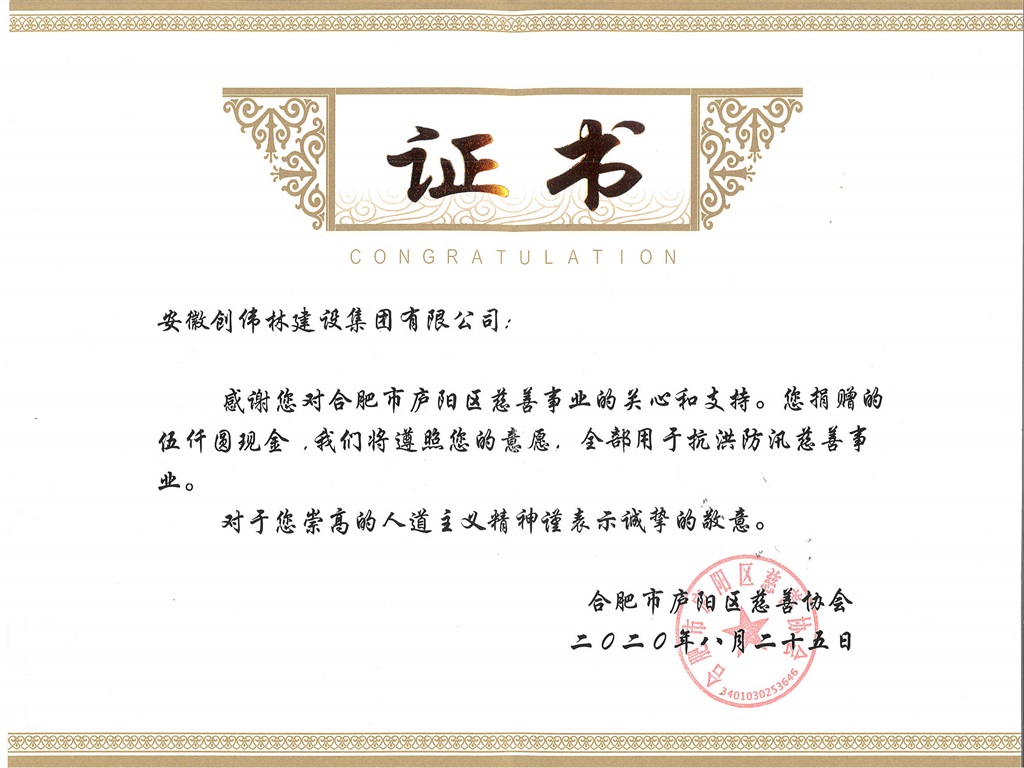 2020年庐阳慈协抗洪防汛捐赠