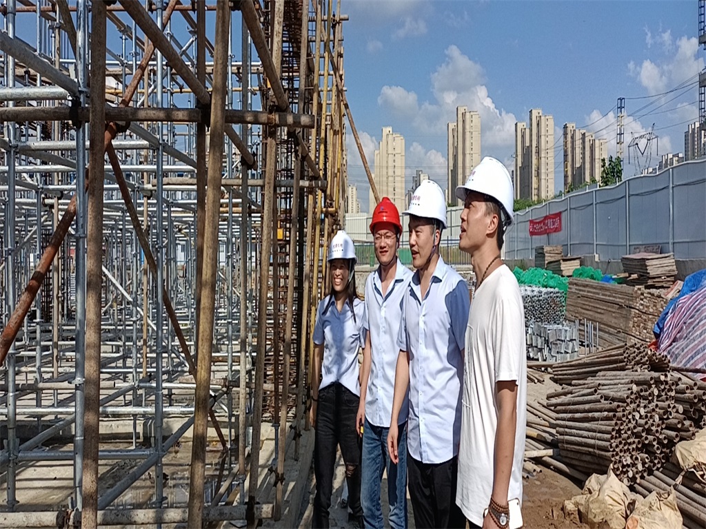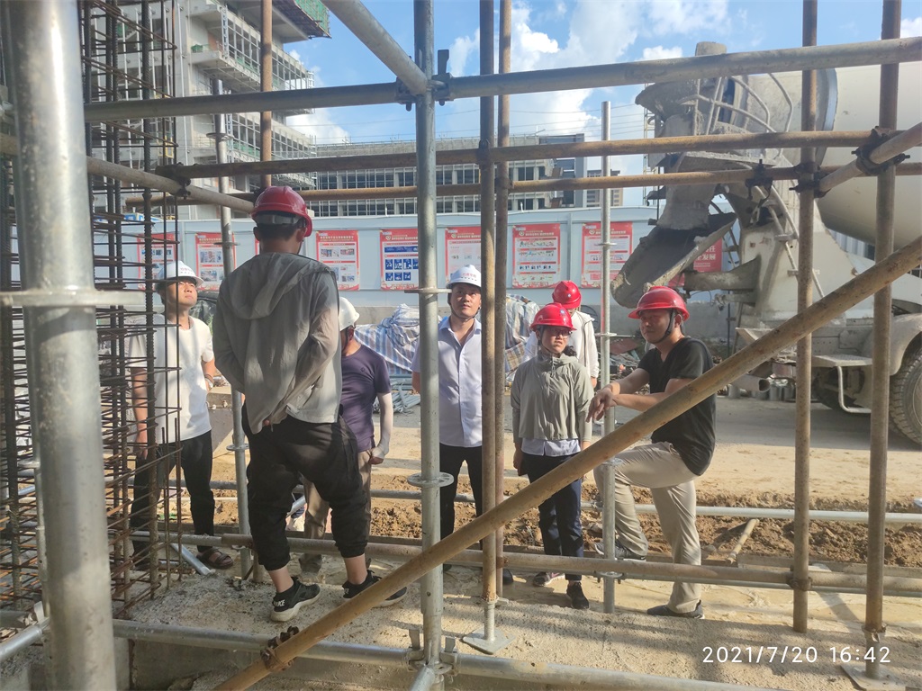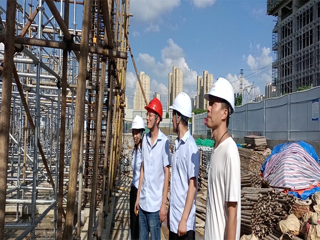 2021年7月20日,创伟林集团公司一行6人顶着炎炎烈日,到合肥供水集团服务中心项目现场进行例行安全巡检。图为公司领导与驻场业主代表、驻场监理工程师就安全巡检中发现的问题及解决方法现场交流。
